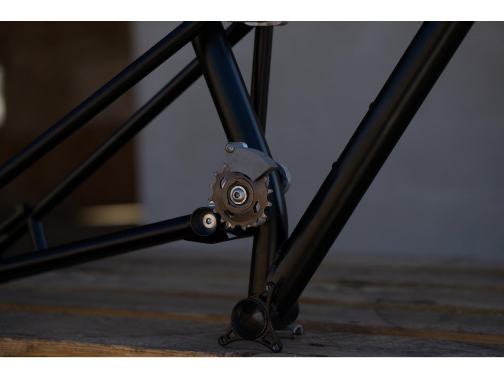 - Na rám jsme použili ve spolupráci se společností Reynolds vysoce zušlechtěnou nerezovou ocel. Díky zušlechtění dosahují materiály pevnosti až 1400Mpa. Tyto hodnoty pevnosti nám dovolují použít ztenčované stěny trubek (místy máme tloušťku stěn trubek pouhých 0,6mm)
