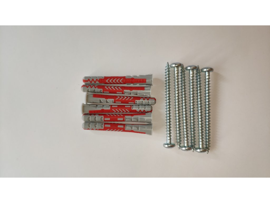 Sada univerzálního spojovacího materiálu pro nástěnné (stěnové) držáky kol na stěnu anebo pro samotné podkoláky.